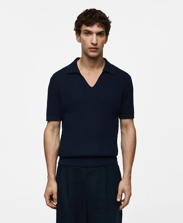 Mango Men's Fine-Knit Ribbed Cotton Polo Shirt