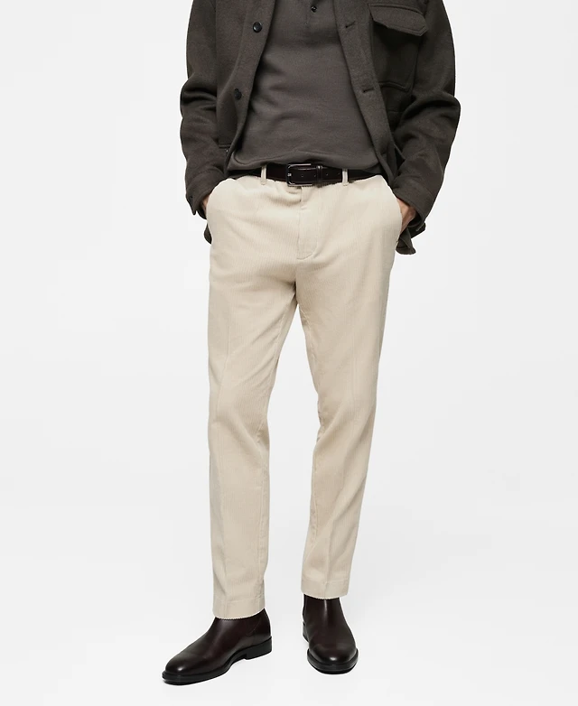 Mango Men's Slim-Fit Corduroy Tapered Crop Chino Pants