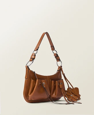 Mango Women's Gathered Pockets Leather Shoulder Bag