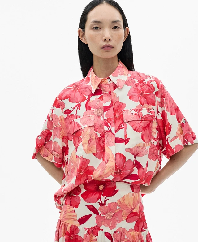 Mango Women's Floral Print Pocket Shirt