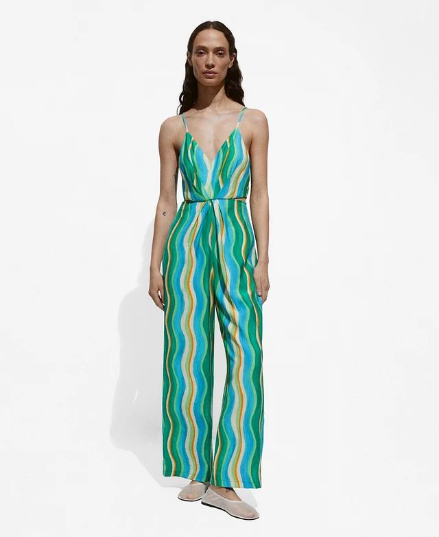 Mango Women's Asymmetrical Neck Long Jumpsuit