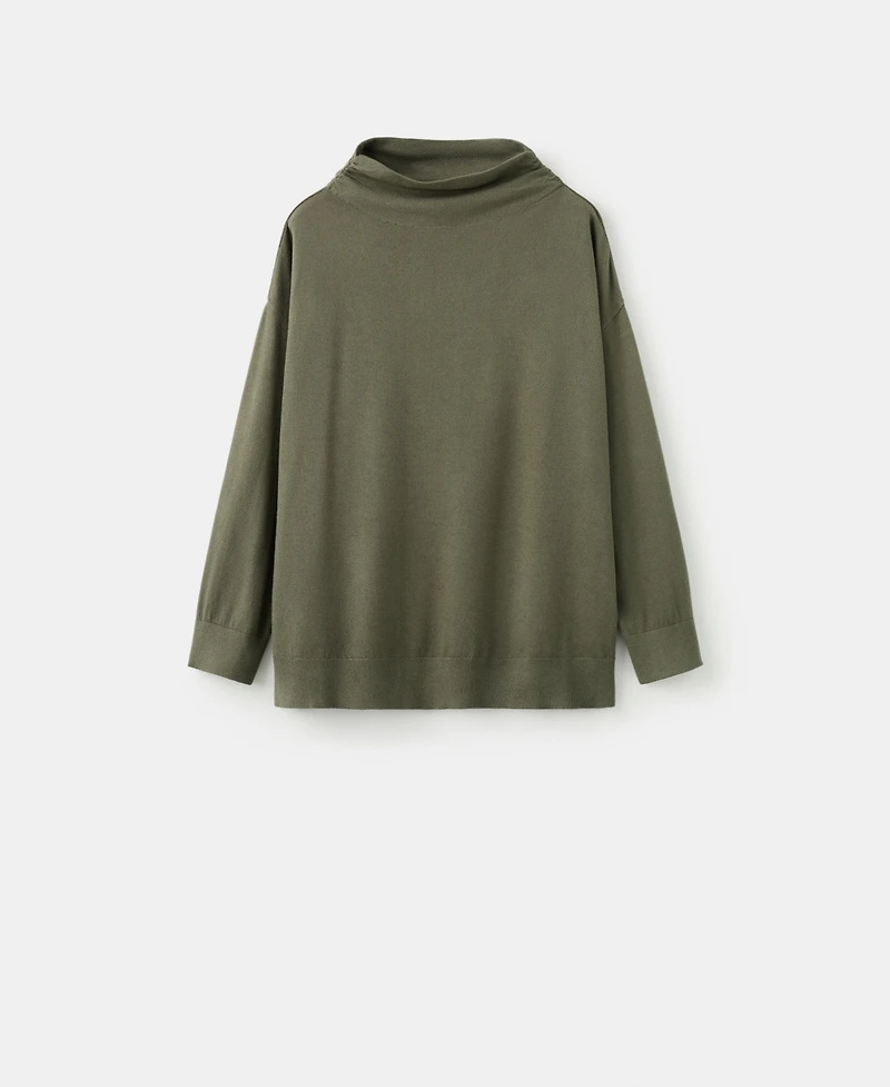 Embrace subtle structure with the Gathered Perkins-Neck Sweater from Mango. Made from fine-knit fabric, this sweater features high collar and gathered shape.