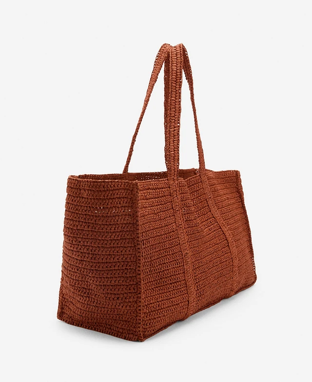 Mango Women's Natural Fiber Openwork Shopper Bag