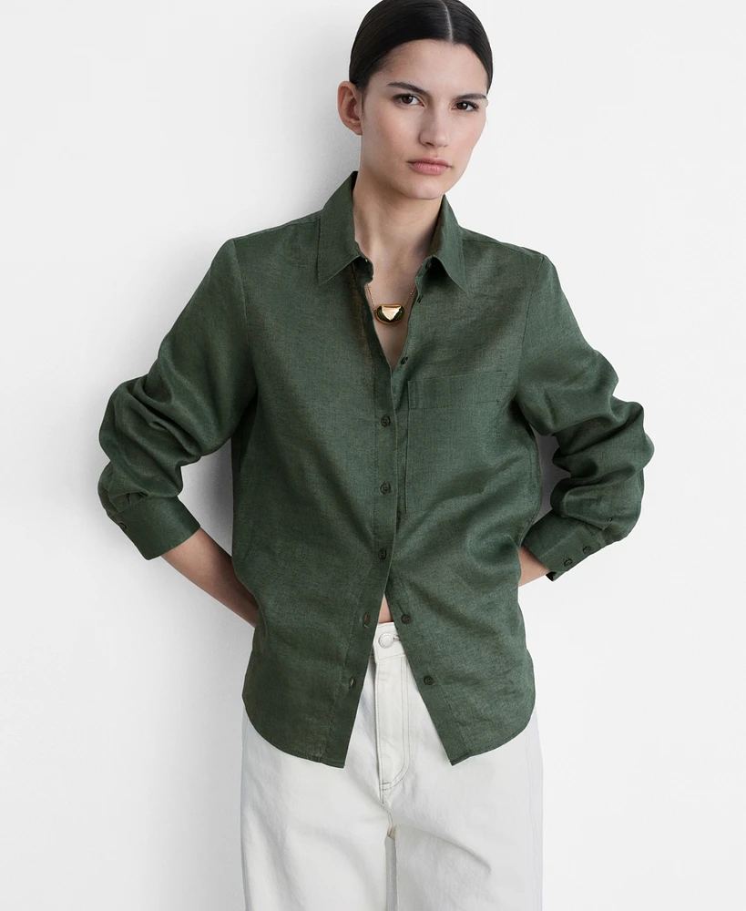 Mango Women's Short Sleeve Linen-Blend Shirt