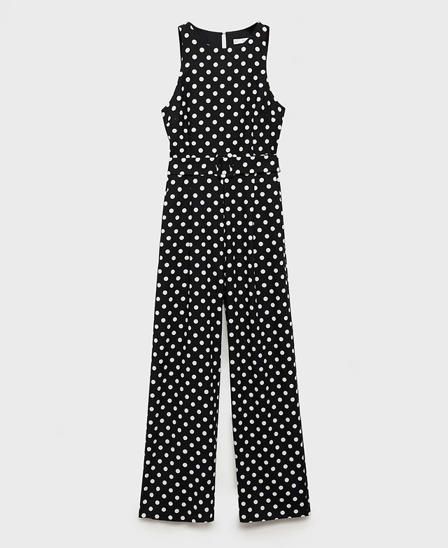 Mango Women's Polka-Dot Belt Linen Jumpsuit