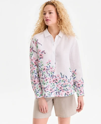 Charter Club Women's 100% Linen Floral Placement-Print Shirt, Macy's Exclusive