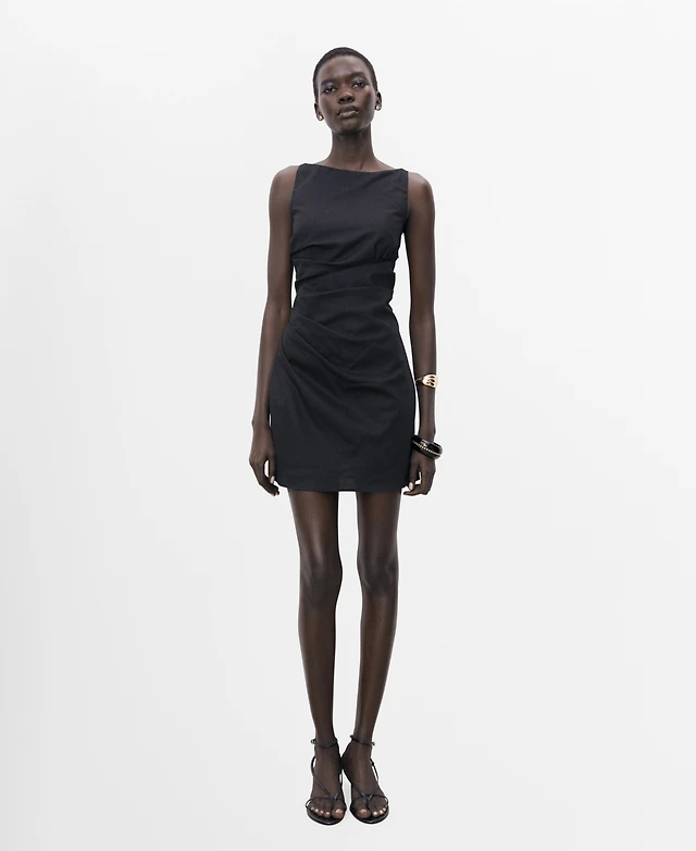 Mango Women's Short Draped Linen Dress