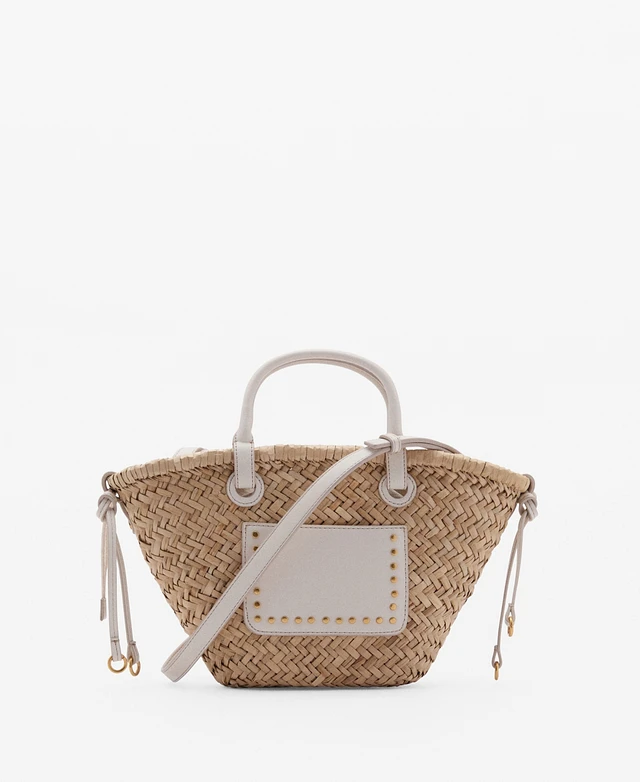 Mango Women's Natural Fiber Double Handle Shoulder Bag