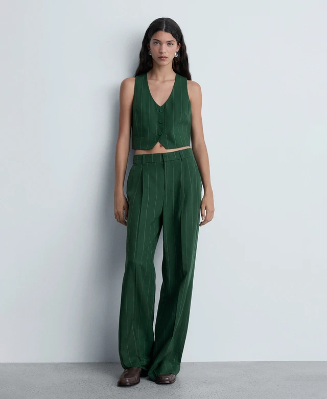 Mango Women's Striped Linen-Blend Trousers Pants