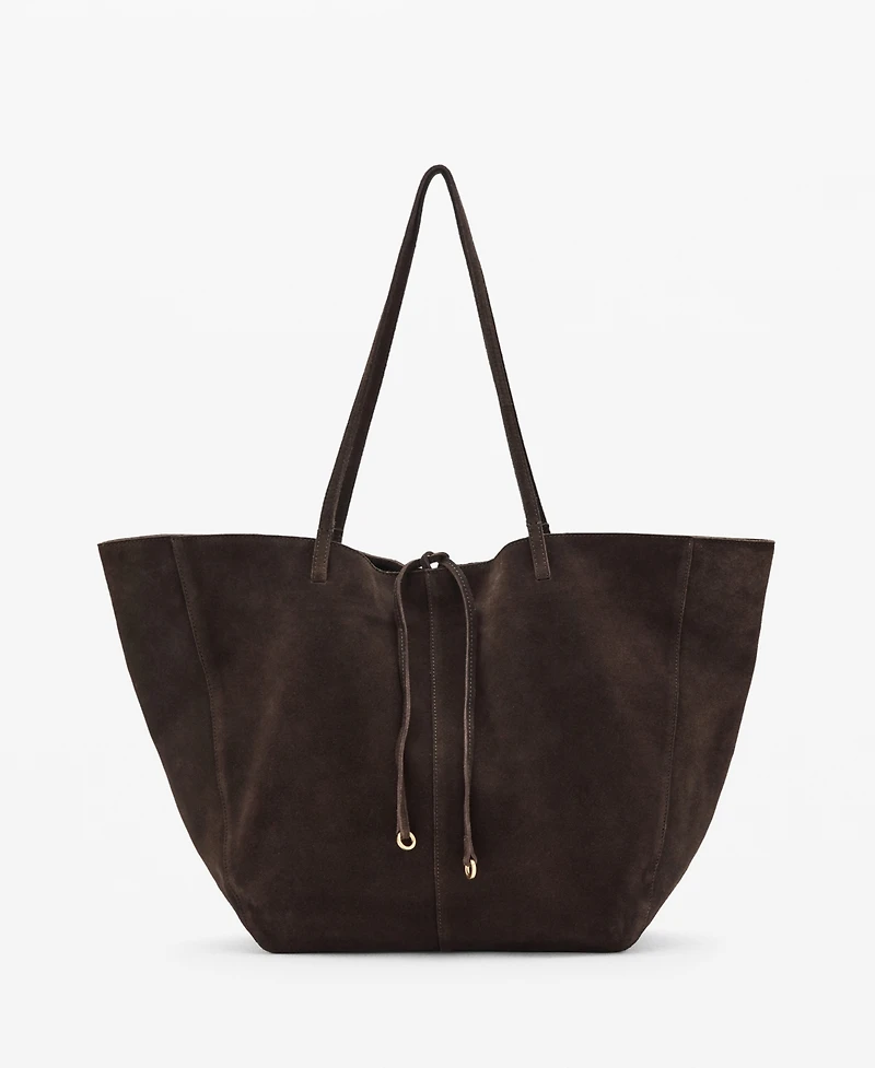 The Suede Shopper Bag With Bow Closure from Mango balances practicality with soft texture. Made from bovine leather, this shopper-style bag features double shoulder straps.