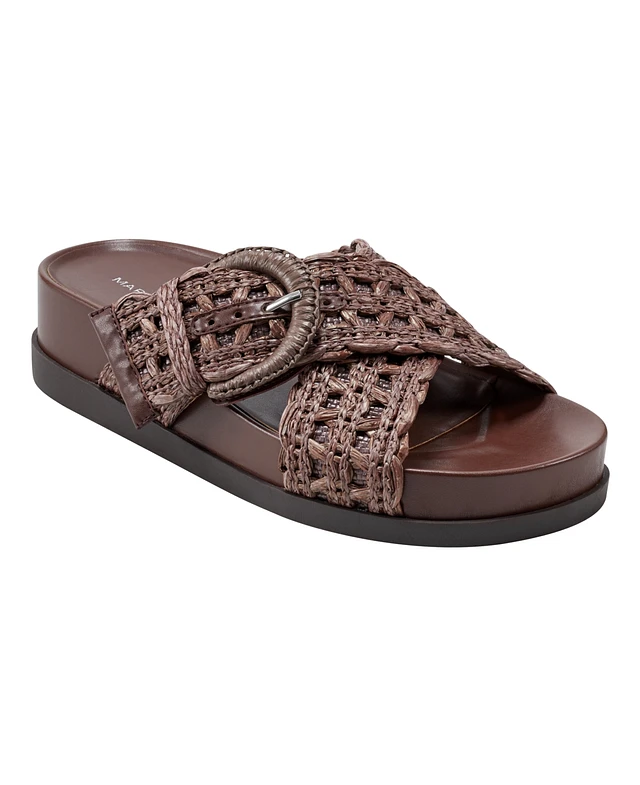 Marc Fisher Ltd Women's Mylan Woven Buckle Straps Flat Sandals