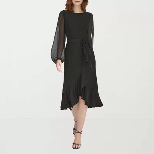 Marc New York Womens Long Sleeve Midi Fit + Flare Dress