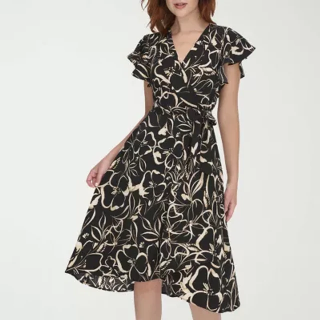 Marc New York Womens Short Sleeve Floral Midi Fit + Flare Dress