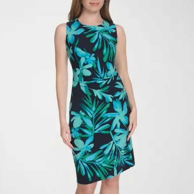 Marc New York Womens Sleeveless Leaf Sheath Dress