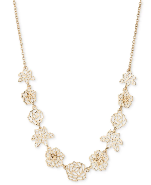 Marchesa Gold-Tone Openwork Flower Collar Necklace, 16" + 3" extender