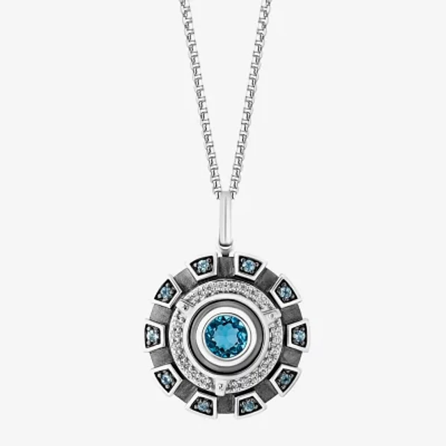 Marvel Fine Jewelry Arc Reactor Womens 1/10 CT. T.W. Genuine Blue Topaz Sterling Silver Round Pendant Necklaces