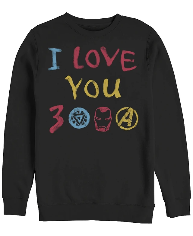 Marvel Men's Avengers Endgame Iron Man Hand Drawn I Love You 3000, Crewneck Fleece