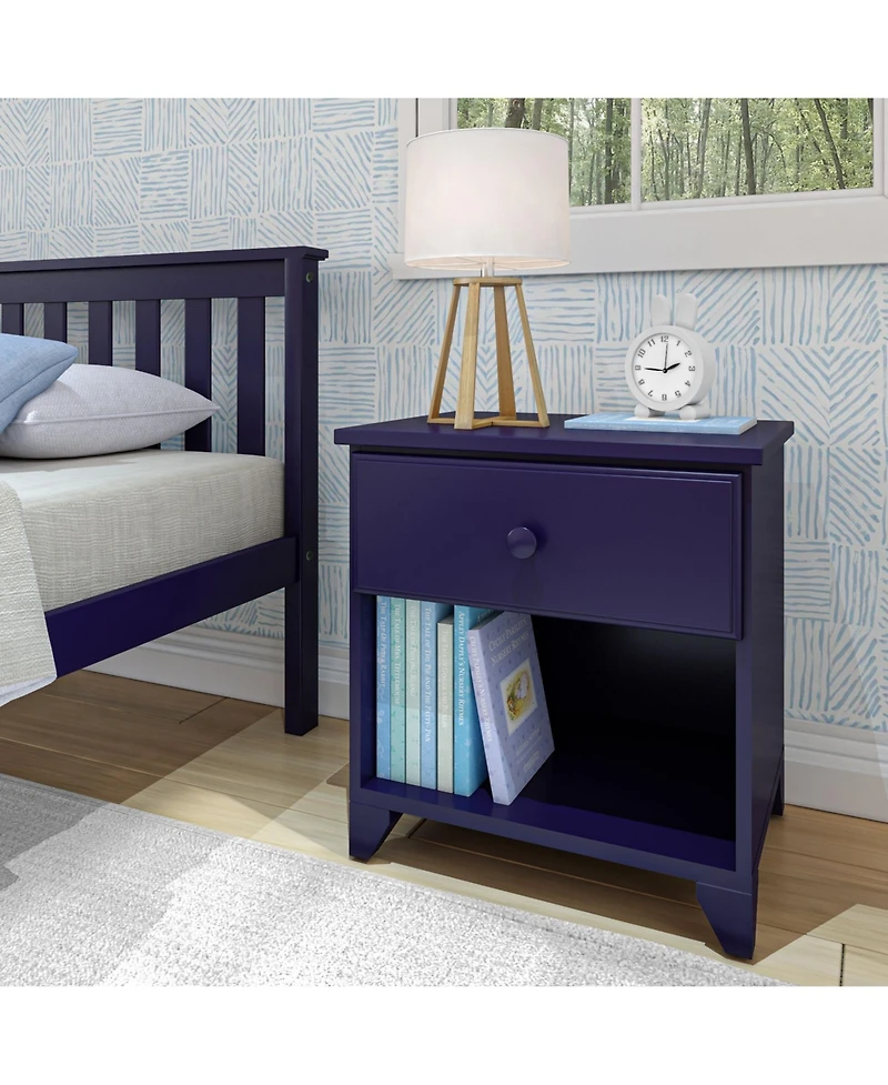 The Max and Lily Classic Wood Nightstand with 1 Drawer combines the perfect bedside storage space for kids with the clean lines and beautiful finishes that coordinate with their room. The knot-free, solid wood nightstand frame, shelf, and drawer front create a strong and sturdy design. A strong, engineered wood drawer bottom provides a high weight capacity. This wood nightstand includes one drawer and shelf to organize and display your favorite items. This bedside table can also function as a bookcase on the bottom or as an end table for even greater versatility. this kids nightstand complements your clean and healthy home. This nightstand for kids measures 23"" L x 17.50"" W x 24"" H. The interior of the drawer measures 18.75"" L x 13"" W x 5.25"" H. The interior of the shelf measures 20"" L x 16.25"" W x 10.5"" H.