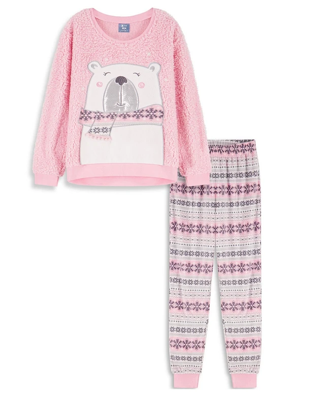 Max and Olivia Girls Sherpa Top with Jogger Pant Pajama 2pc Set
