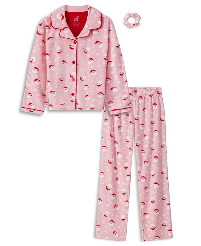 Max and Olivia Girls Velour Coat Pajama with Scrunchie 3 pc Set