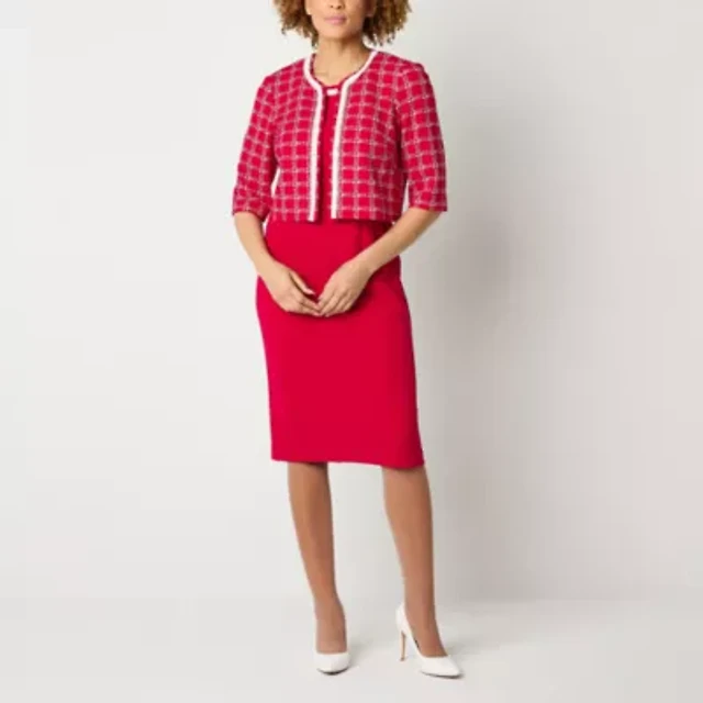 Maya Brooke Womens Pearl Trim Plaid Jacket Dress