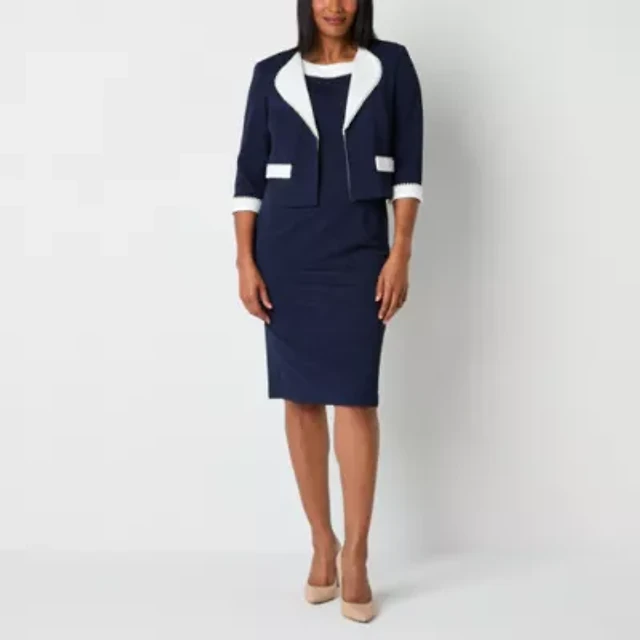 Maya Brooke Womens Plus Pearl Trim Jacket Dress