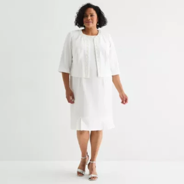 Maya Brooke Womens Plus Pearl Trim Jacket Dress
