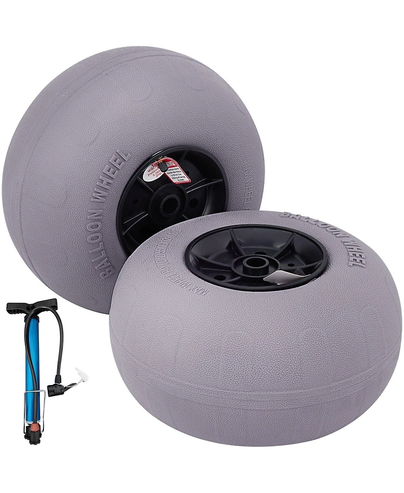 Glide over sand, gravel, and grass with these 13"" Beach Balloon Wheels, designed as replacement sand tires for kayak dollies, canoe carts, and beach buggies. Made from robust Tpu, these low-pressure (2-3 Psi) balloon tires offer superior flotation and smooth rolling, preventing sinking or getting stuck in soft terrain. Each wheel inflates from 11.8"" x 5.9"" to 13"" x 7.1"" using the included hand air pump, making setup quick and effortless. With a 0.9"" hub diameter and 121 lbs (55 kg) load capacity per pair, they re ideal for hauling beach umbrellas, folding chairs, coolers, and gear on your next beach day, picnic, or camping trip.