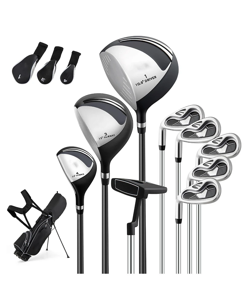 Get course-ready with this men s left-handed complete golf set, designed to cover every shot from tee to green. The set includes a 460CC driver with an aluminum alloy head for a larger sweet spot and more forgiving contact, plus a #3 fairway wood, #4 hybrid, and irons (#6 through #P) built with a low center of gravity for stability and control. A mallet-style putter supports alignment on the green. Durable steel shafts provide consistent feel, and the included stand bag offers organized storage and easy carrying.