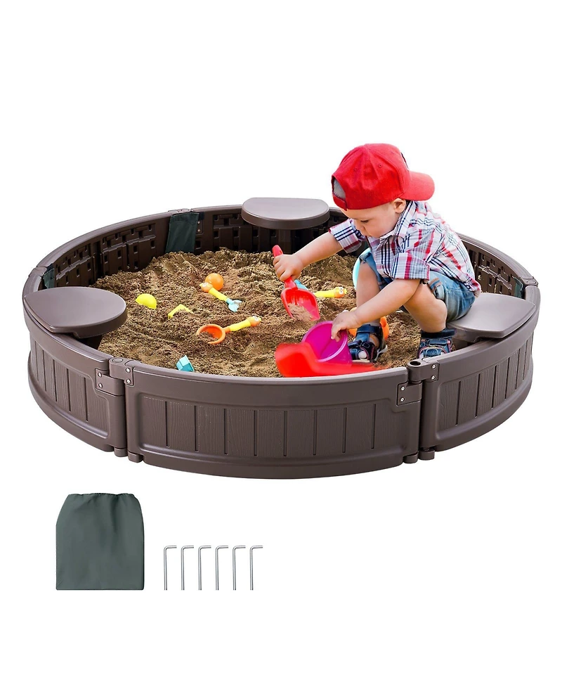 Create a mini outdoor playground with this round sandbox with cover, designed to give kids ages 3-12 a safe, fun space to dig, build, and explore. Made from premium Hdpe plastic with a weather-resistant finish, it stands up to sun, rain, and daily play while staying gentle and safe for children. The spacious 47.2" diameter play area comfortably fits 2-3 kids, and the 3 corner seats let children sit and play without sitting directly in the sand. A perforated bottom liner helps drain water and keep sand ventilated, while the Oxford fabric cover keeps sand clean and dry between uses. Lightweight at just 13 lbs, this sandbox is easy to move and assembles quickly with no tools required, making it an ideal gift for backyards, beaches, and parks.