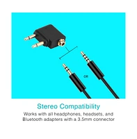 Enjoy a better audio experience during those long flights with the Mee audio airplane adapter. The adapter converts the two (dual mono) airplane mini-plugs into a stereo 3.5mm mini-jack connection. Connects directly to the 2-Prong airline audio jack. Works with any headphones or earphones utilizing a standard 3.5mm (1/8") plug. Outputs stereo sound.Compatible with all Mee audio headphones and other iPhone-compatible headsets except those utilizing Apple-specific 3-button remotes.