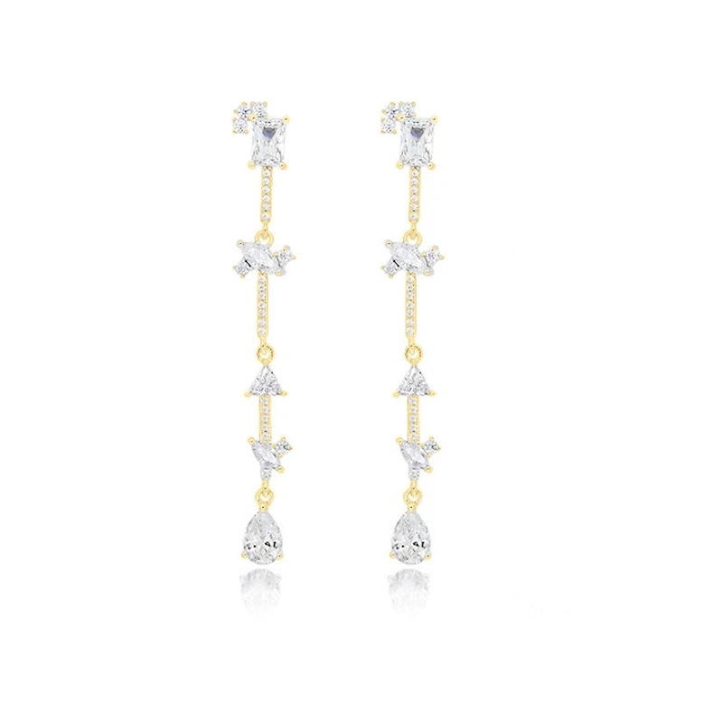 - Long Linear Earrings with mixed shape zirconias