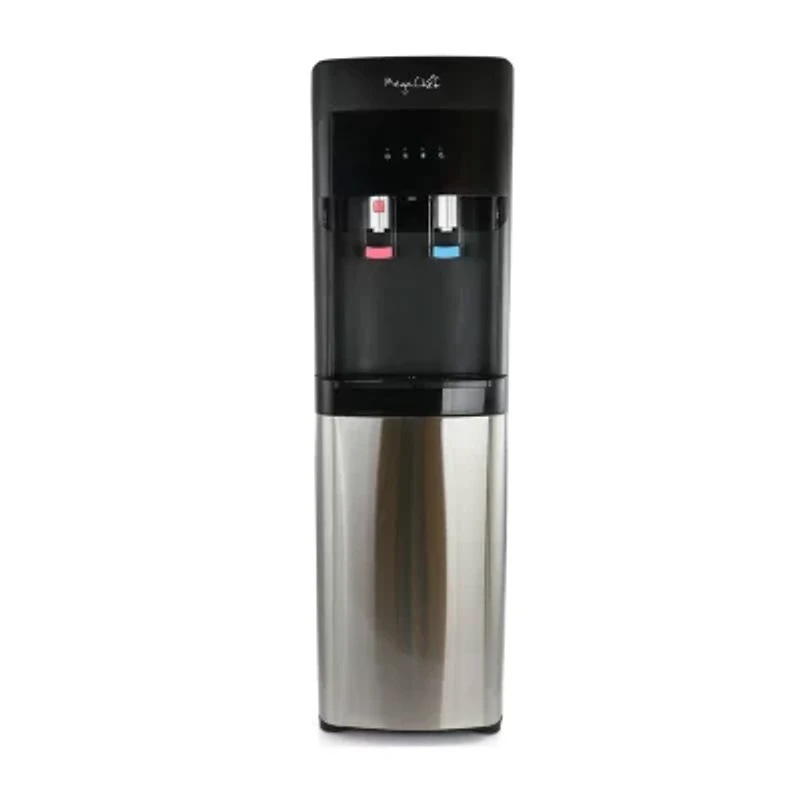 Have fresh, clean water at the press of a button with this Mega chef bottom load hot and cold-water dispenser. Choose from refreshingly cool water for a quick drink or instant hot water for coffee, tea, or soup. To prevent burns, the hot water tap features a safety lock. The unit fits standard 3- and 5-gallon bottles, and the stainless-steel weld tank prevents overheating and water drainage. A removable drip tray catches spills for easy cleanup and can allow room for larger cup sizes if needed. Unlike a traditional top loading water dispenser, this dispenser is loaded from the bottom to prevent strain from lifting and spills making it safer for everyone. A bottle empty indicator light will conveniently let you know when the bottle needs to be replaced.