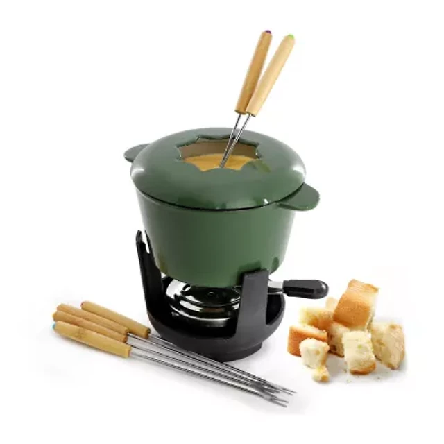 MegaChef Enameled Cast Iron Fondue Pot with 6 Serving Forks