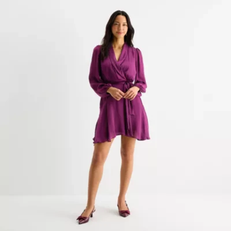 Melonie T Womens Long Sleeve Wrap Dress