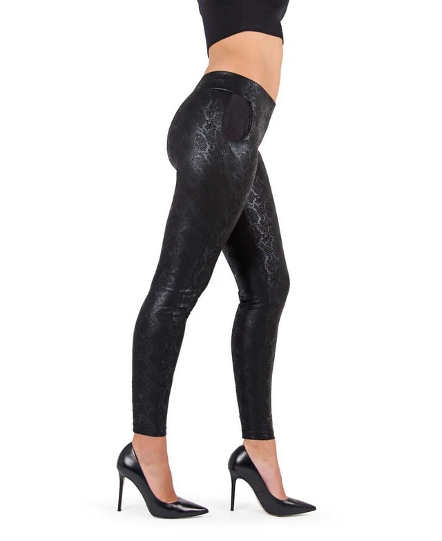MeMoi Women's Sophisticated Metallic Snakeskin Leggings