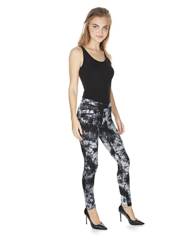 MeMoi Women's Zip Tie Dye Soft Cotton Blend Leggings