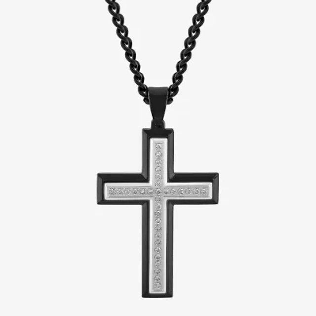 Mens 1/6 CT. T.W. Diamond Black Stainless Steel Cross Pendant Necklace