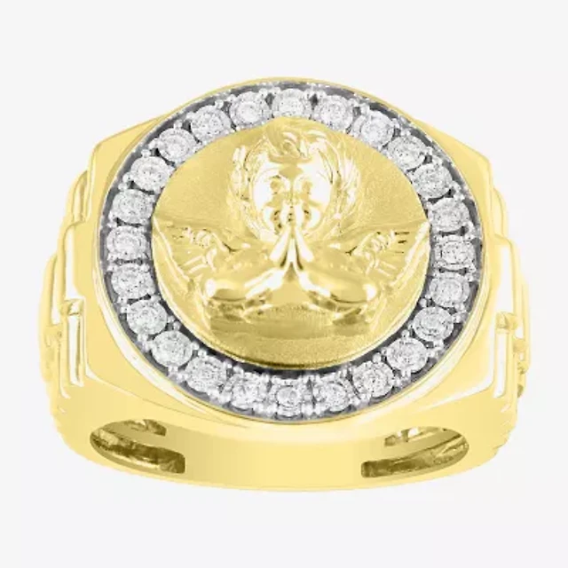 Mens 1/4 CT. T.W. Natural White Diamond 10K Gold Angel Fashion Ring