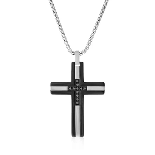 Mens 1/2 CT. T.W. Black Diamond Stainless Steel Cross 24 Inch Pendant Necklace