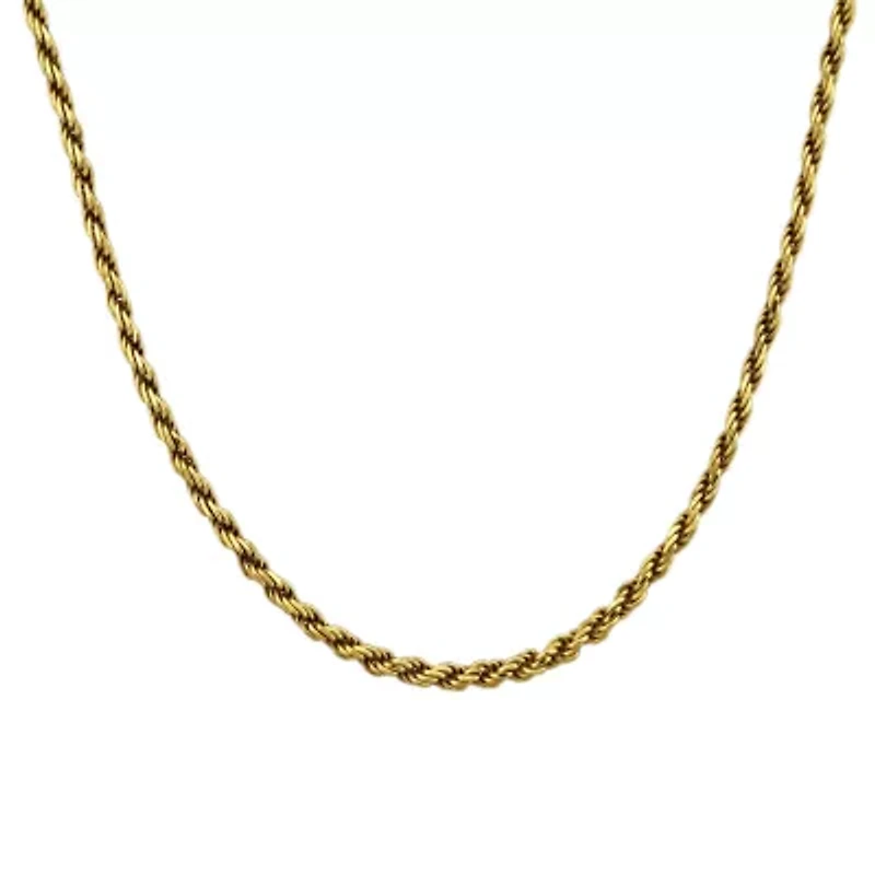Mens 18K Yellow Gold Over Silver 20" Rope Chain Necklace