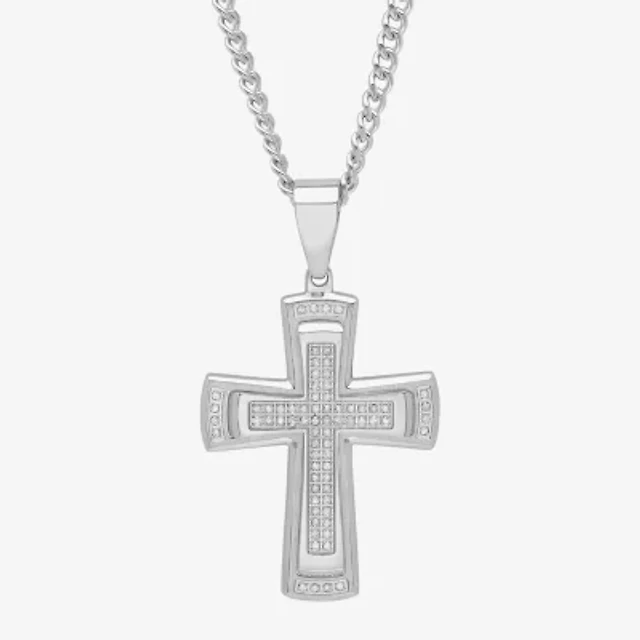 Mens 3/8 CT. T.W. Natural White Diamond Stainless Steel Cross 24 Inch Pendant Necklace