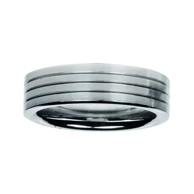 Personalized Mens 7mm Diamond-Cut Stainless Steel Wedding Band
