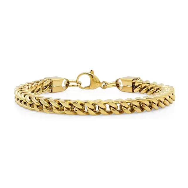 Mens 14K Gold Over Stainless Steel Stainless Steel 8 1/2 Inch Link Bracelet