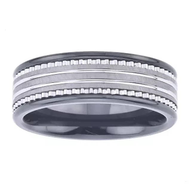Mens 8mm Tungsten Carbide & Black Ceramic Wedding Band