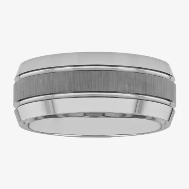 Personalized Mens 9mm Comfort Fit Tungsten Carbide Double Groove Wedding Band