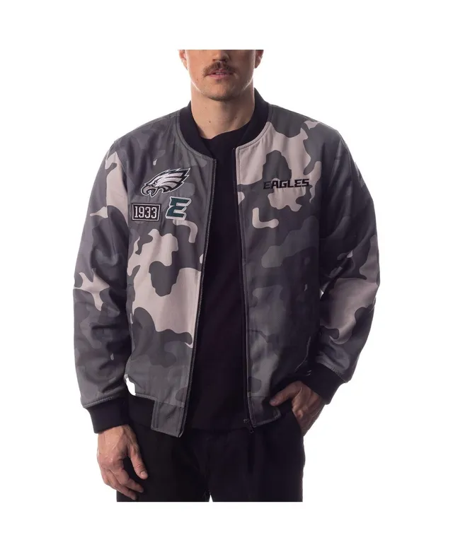 Men's and Women's The Wild Collective Gray Distressed Philadelphia Eagles Camo Bomber Jacket