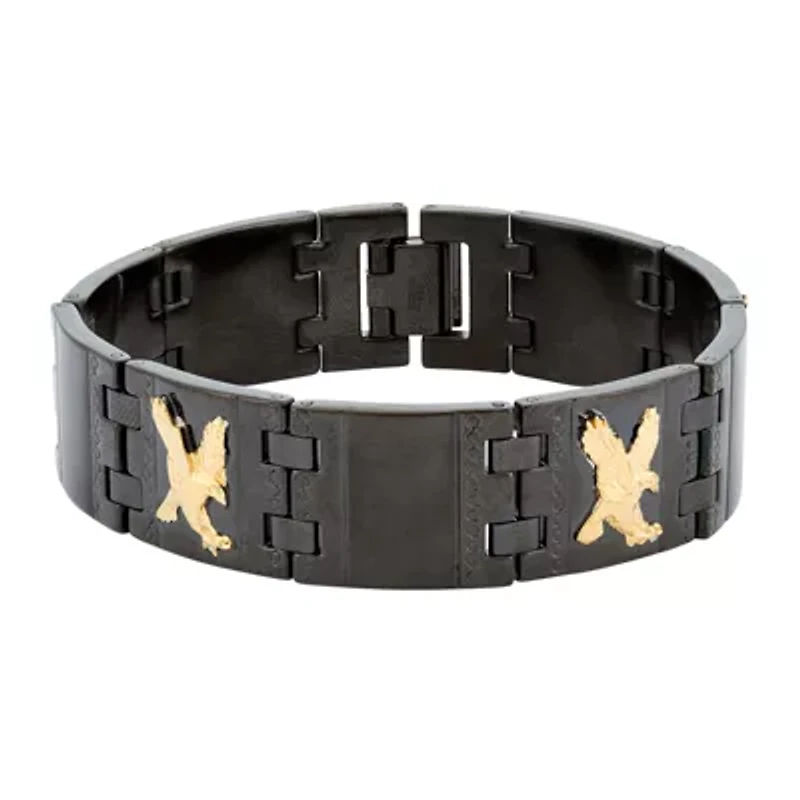 Mens Black Stainless Steel Eagle Link Bracelet
