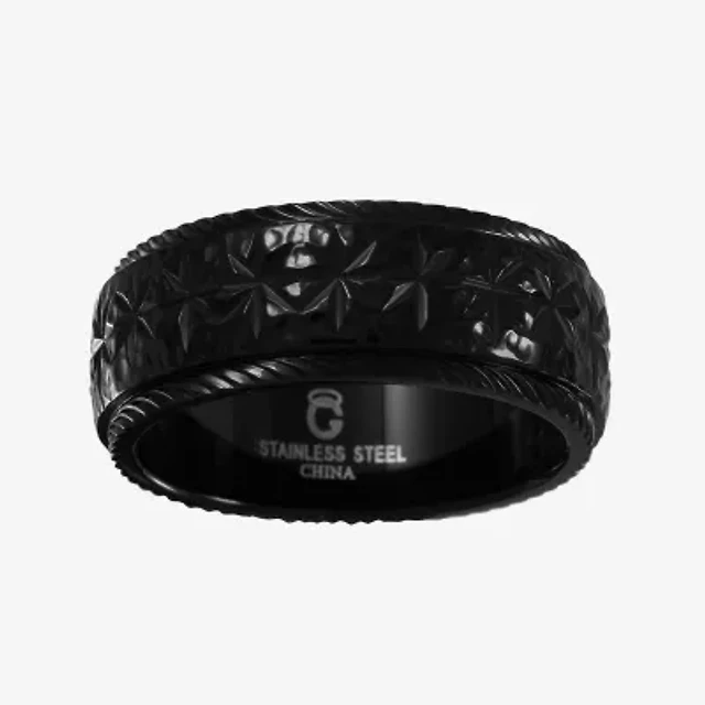 Mens Black Stainless Steel Textured 8mm Wedding Band