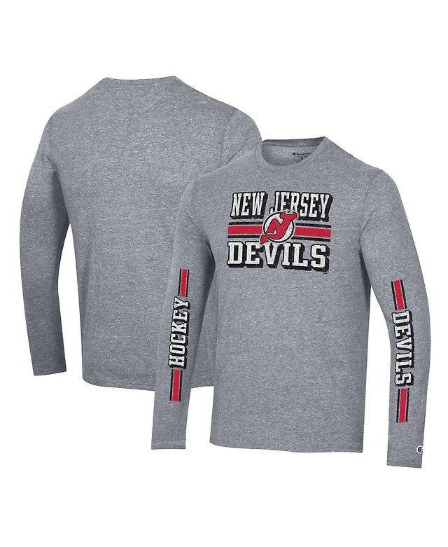 Men's Champion Heather Gray Distressed New Jersey Devils Tri-Blend Dual-Stripe Long Sleeve T-shirt